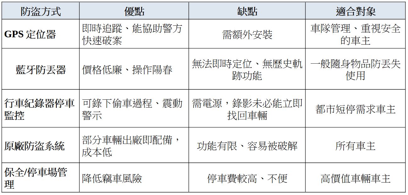 3. 科技防盜是必須:GPS等高科技設備,已成為找回失車的重要工具。