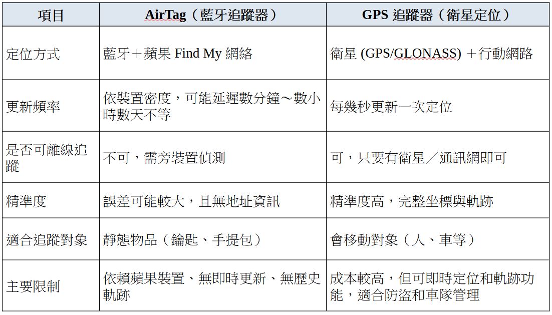 從實測與技術原理分析可見,AirTag 在物件靜態、位置較固定情況下仍有其用途,但它遠非適合追蹤會移動的對象如兒童、長輩、車輛。若你真正關心的是「即時掌握移動中的人或車」,建議選擇專業的 GPS 追蹤器——它不是奢侈,而是責任。換句話說:AirTag 是「找回物品的便利工具」,而 GPS 追蹤器才是「守護安全的專業利器」。